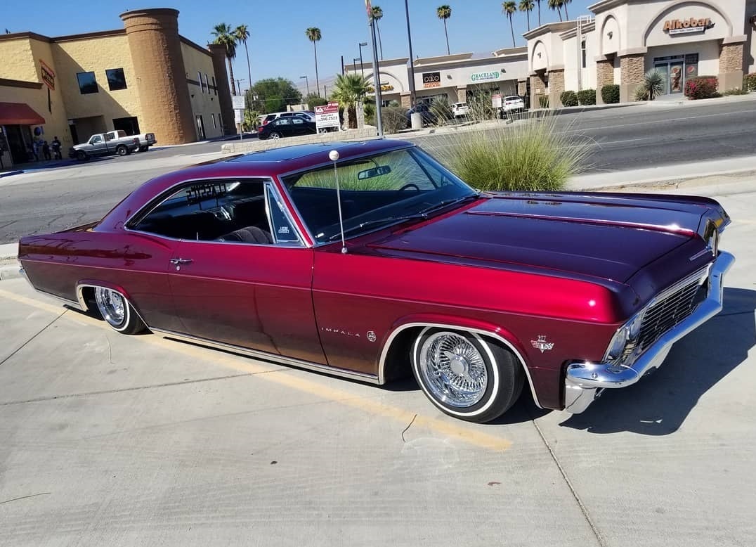 That deep candy red paint with the chrome and wire wheels just takes you back. Long body, white walls, and that smooth stance that makes you slow down just to look at it.