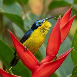 In the sunlit wetlands and grassy clearings of northern South America, this scarlet-crowned sentinel perches boldly above reeds and riverbanks. It feeds on seeds, grains, and small…