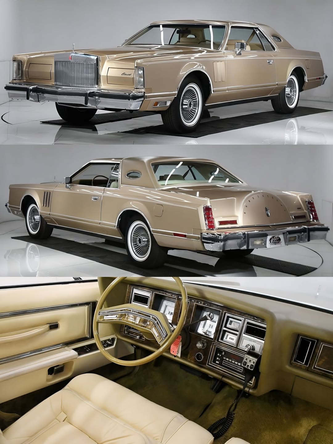 This 1979 Lincoln Mark V is the definition of old school luxury. That champagne gold paint with the matching vinyl top gives it a classy look that only cars from this era had. The long hood the huge chrome grille and those turbine style wheels make it look like it is floating down the road.