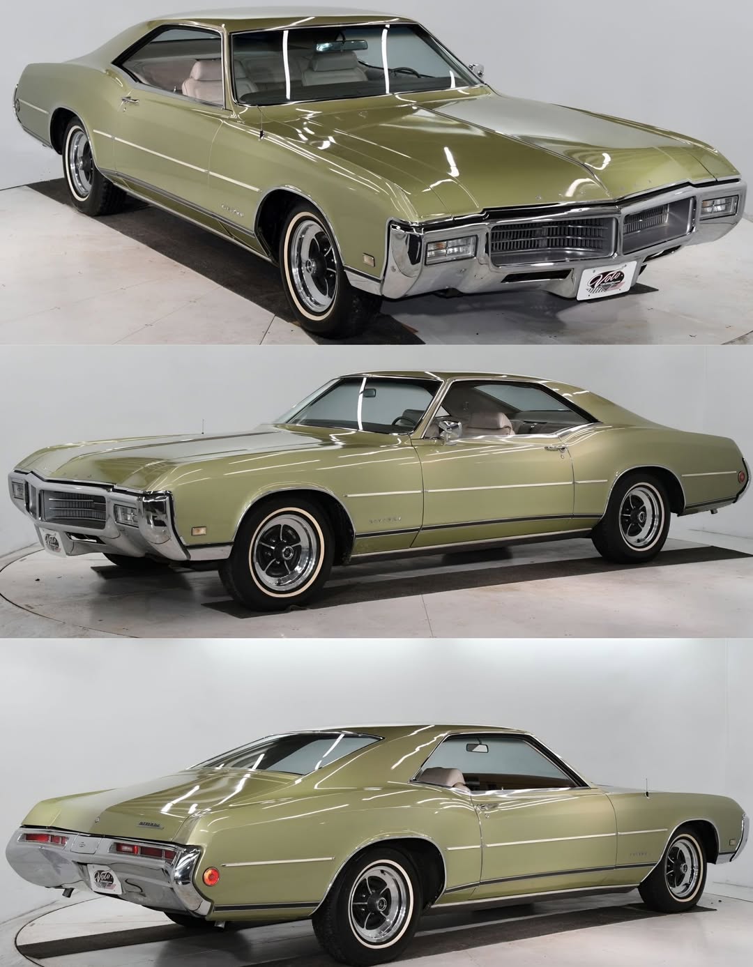 This 1969 Buick Riviera has such a cool and classy look. That light green paint gives it a smooth vintage vibe and the long body lines make the whole car look sleek and elegant. The hidden headlights and wide front grille give it a bold front end that really stands out.