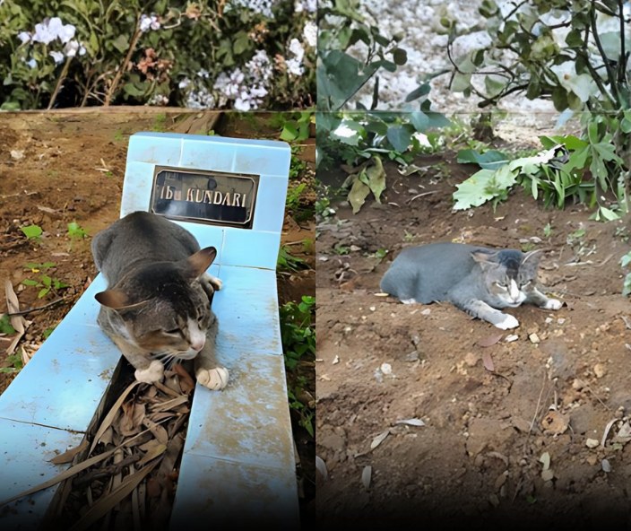In Central Java, Indonesia, a stray cat has spent over a year lying on her late owner’s grave crying softly, sleeping, and refusing to leave. Each day, she visits the old house to eat, then returns before sunset. Locals call it loyalty, but it’s deeper than that, love lingering where it once belonged, waiting in silent devotion.