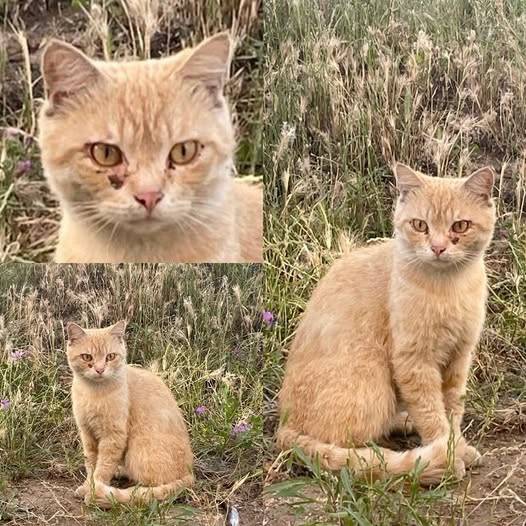 A couple of months ago, this cat started showing up at my home in pretty bad shape and very scared of humans.