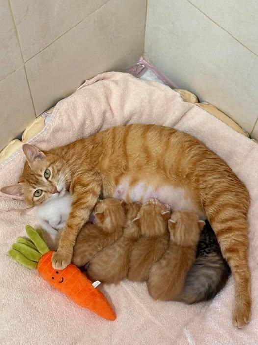 After 12 hours of effort, six little kittens were safely delivered. 🐱💕