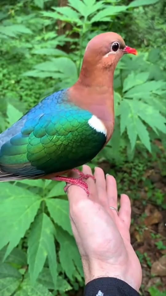 In the shaded forests of South and Southeast Asia, this emerald-winged wanderer glides softly across the leaf-strewn ground. It searches patiently for fallen fruits, seeds, and tender shoots hidden beneath the undergrowth. What makes it extraordinary is its quiet role as a forest gardener — carrying seeds across winding trails and secluded clearings, helping new trees take root far from the parent canopy. A flash of green in the dim forest light, yet a gentle steward of the woodland floor.