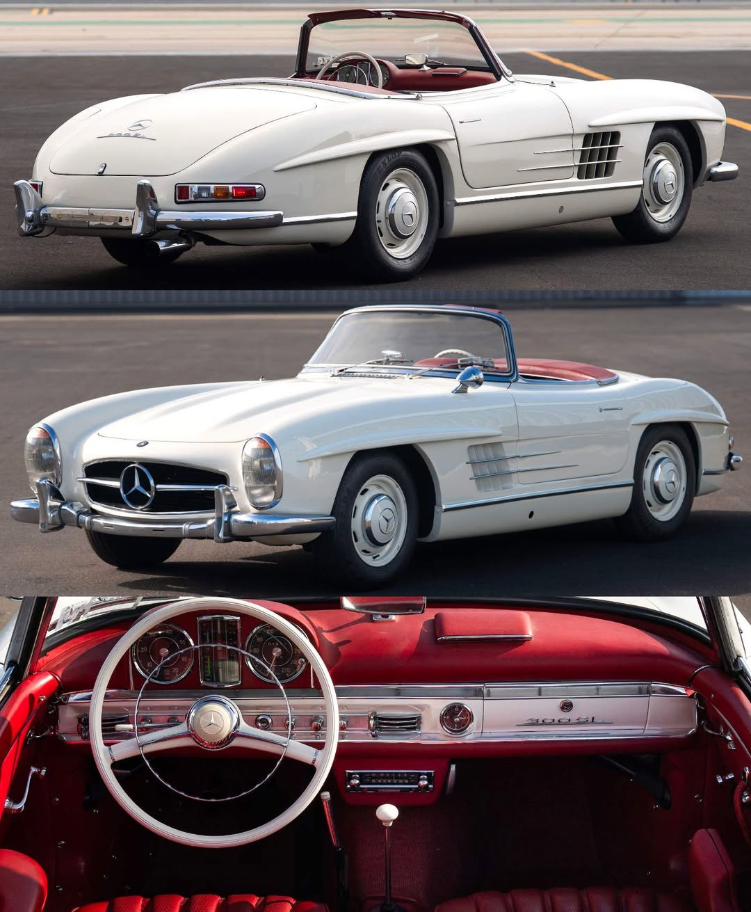 Mercedes-Benz produced 1,858 Roadsters between 1957 and 1963. Slightly heavier than the Gullwing, the Roadster is widely regarded as the more capable driver’s car, and collector values have reflected that reputation in recent years.
