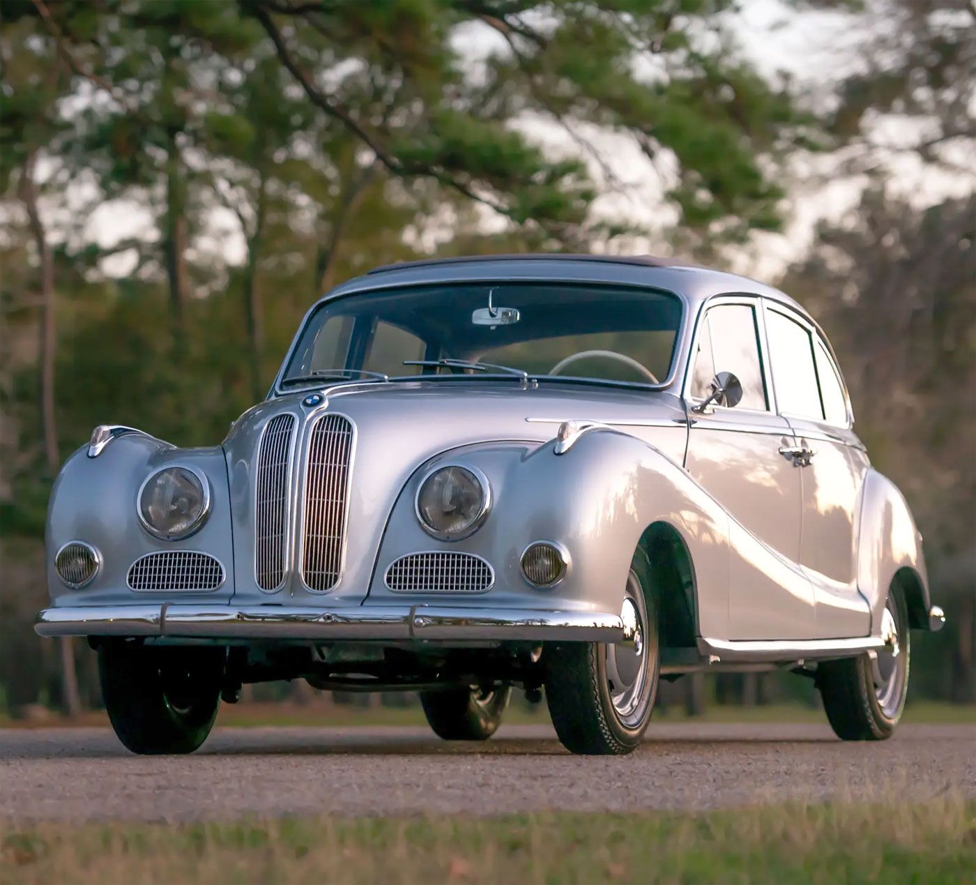 Debuting at the 1951 Frankfurt Motor Show, the 501 was BMW’s first post-war car produced in Bavaria. Nicknamed “barockengel” (baroque angel) for its curved styling, it initially featured a 2.0-liter inline-six engine producing 64 horsepower, paired with a four-speed manual transmission. The model came in sedan, cabriolet, and coupe variants.