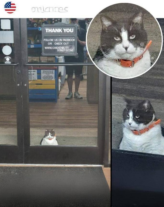This tuxedo cat named Oreo has been arriving at the shop’s door around 5:30 AM every morning since the end of 2023, vying to be the first “customer” to enter. Sitting upright with sharp eyes, it’s just like the shop’s doorkeeper. The store humorously posted a photo on Facebook with the caption: “We open at 6 AM— the line starts behind this guy.”