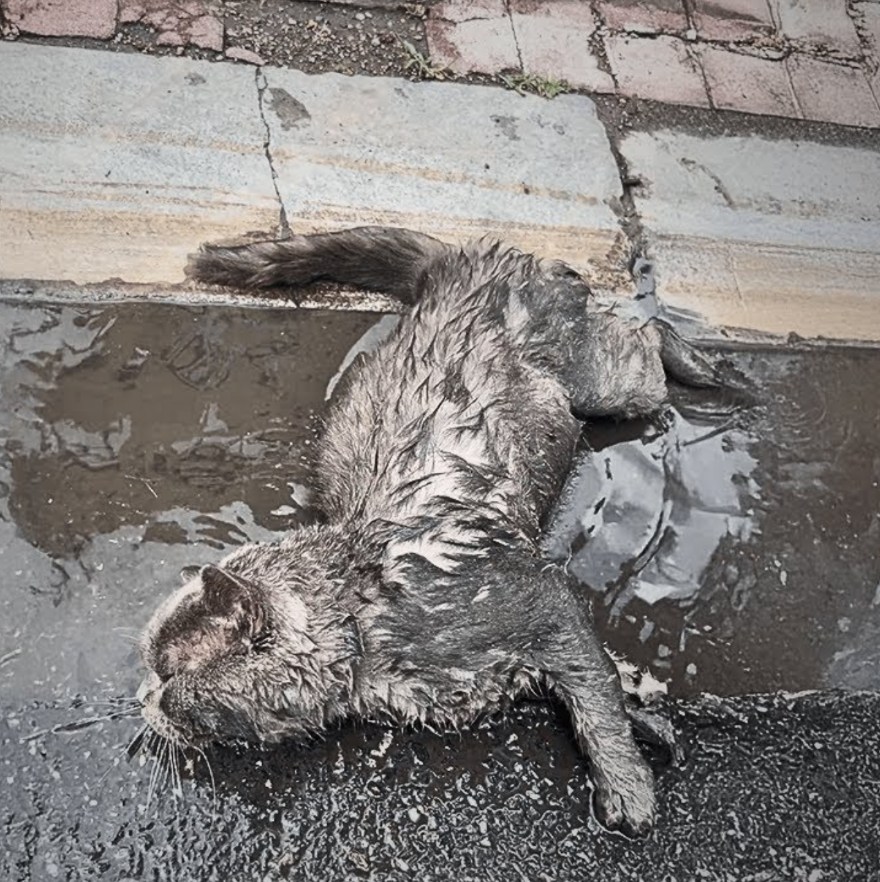 It all began one rainy morning when, while distractedly answering a phone call, I stepped outside my workplace and noticed a cat lying almost lifeless in a puddle.