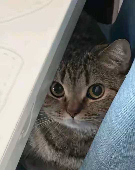 A friend gave me a cat they no longer wanted. It’s been three days now, and the cat still doesn’t dare come out of the cabinet—only peeking at me with its little eyes.