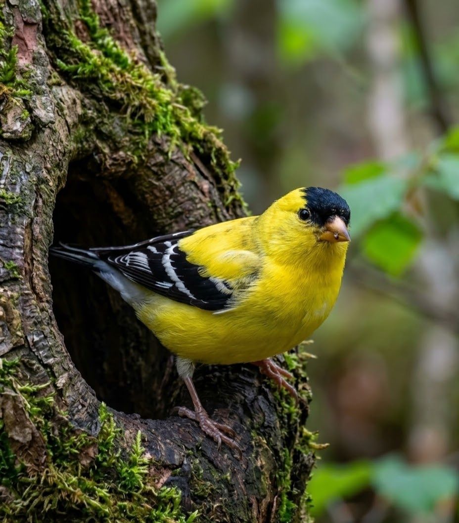 In the sunlit meadows and willow-lined streams of western North America, this bright yellow wanderer flits lightly among swaying stems. It feeds on tiny seeds from thistles, grasses, and wildflowers, delicately plucking them from drying heads with its fine bill. What makes it extraordinary is its patience with the seasons — nesting later than most birds, waiting until summer fields burst with seeds to raise its young. A flicker of gold above the grasses, yet a quiet steward of the open fields.