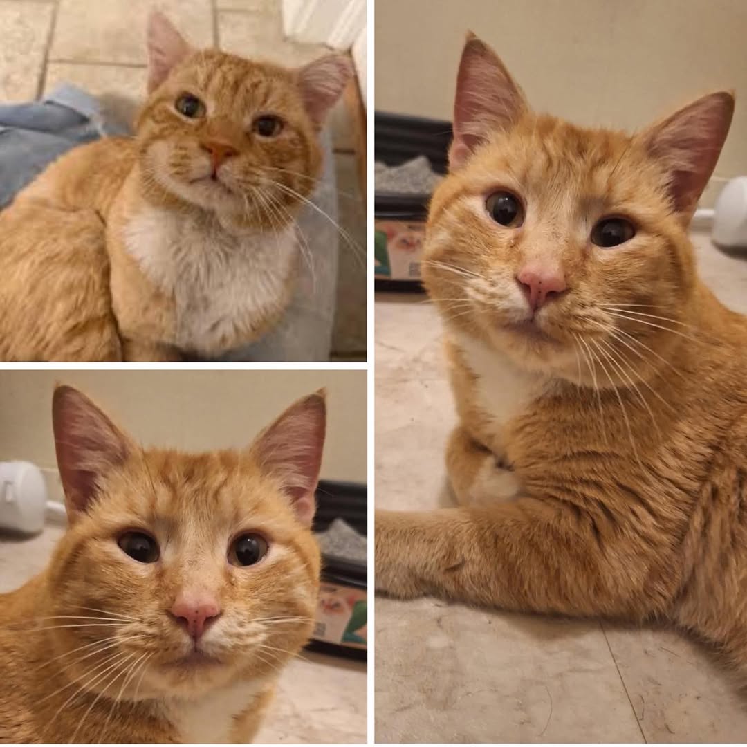 Me and my neighbor feed the strays but we are by a busy road so its only been the same 3 feral cats since my husband and I moved in a year ago. About a month ago an orange tabby appeared on the hood of our car (we park our car right under the living room window) he was looking in at us crying. Id assumed he’d heard the words we had food so I went out to feed them. Its been getting cold so | put warmed broth over the cat food so they could have warmed food. He completely ignored the food and went straight to me for pets. Ever since then he has been crying at our window, following us wherever we went outside, attempting to bolt into our house when we opened the door, scratching at our door, he once snuck into my car and (unknown to me until I was halfway there) rode with me to the grocery store. Eventually as temperature declined my husband and I finally caved and is now in our home in bathroom quarantine until the vet can look at him to ensure the safety of our other two cats. We weren’t looking for a third but a third found us and was very pushy about it.