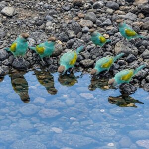 In the sunlit savannas of northern Australia, this vivid ground-foraging parrot moves between termite mounds and open grass with quiet purpose. Its bright green body is set…
