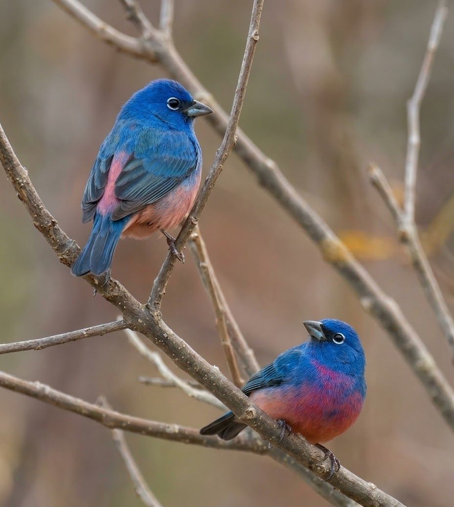 In the sunlit thickets and scrubby hillsides of Mexico, this colorful songster slips quietly among branches with bursts of hidden brilliance. The male glows with a deep rose-colored belly framed by cool blue and gray, a striking contrast against the dry woodland backdrop. It feeds on seeds, berries, and small insects, moving patiently through tangled shrubs in search of each bite. What makes it extraordinary is its soft but persistent song, echoing through warm canyon slopes and brushy valleys. A splash of rose in the dusty hills, yet a gentle voice of the wild scrublands.