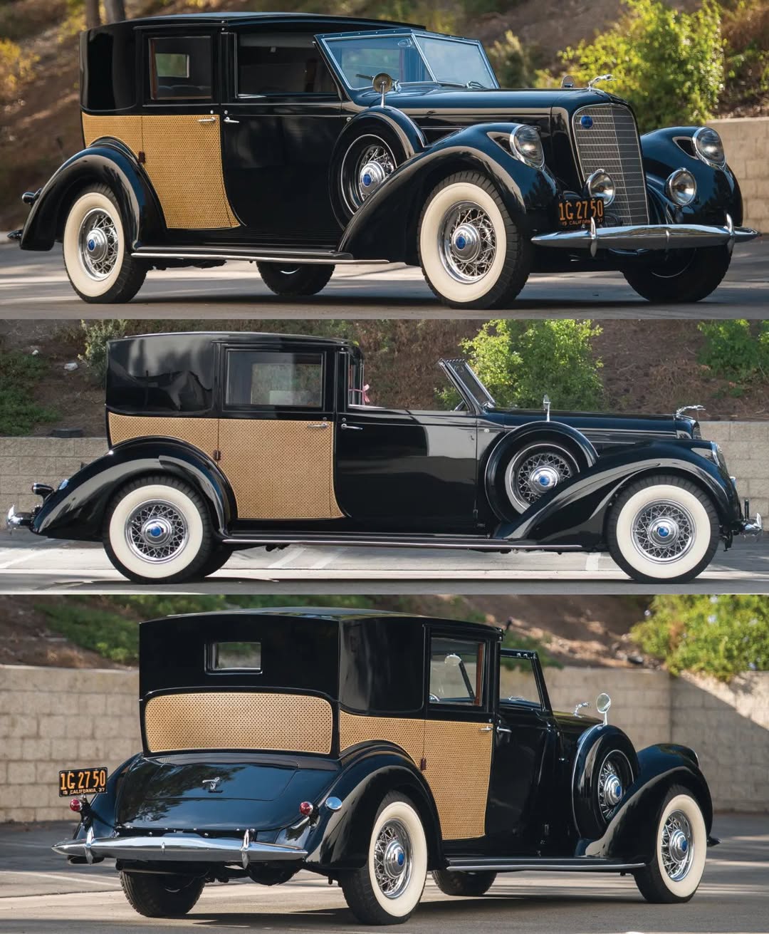 The razor-edge body, with its open chauffeur’s compartment and enclosed rear quarters, followed conventions well established in European coachbuilding.