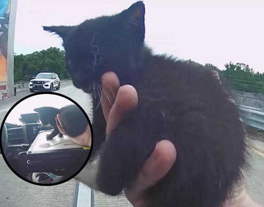 A quick-thinking truck driver noticed the kitten first. He immediately stopped his truck to block one lane of traffic, creating a safe space. Moments later, Officer Stanfield of the Alachua Police Department arrived. He carefully approached the kitten, scooped it up š¾, and brought it to safety.