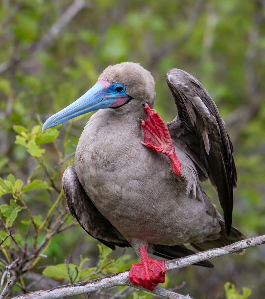 In the sunlit tropical oceans, this agile seabird glides effortlessly above rolling waves and coral atolls. It dives with precision to catch fish and squid, then returns to nest in coastal trees — unlike most of its seabird relatives. What makes it extraordinary is its vivid red feet and sky-blue bill, flashes of color against white or brown plumage as it perches among island canopies. A wanderer of open seas, yet a graceful guardian of tropical shores.