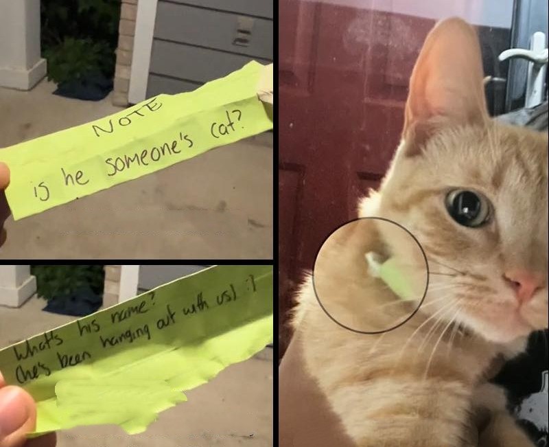 An American woman was recently surprised to discover that her cat was leading a “secret double life” outside the home. One day, she returned home to find a note tucked into her cat’s collar.