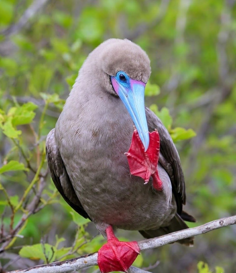 In the sunlit tropical oceans, this agile seabird glides effortlessly above rolling waves and coral atolls. It dives with precision to catch fish and squid, then returns to nest in coastal trees — unlike most of its seabird relatives. What makes it extraordinary is its vivid red feet and sky-blue bill, flashes of color against white or brown plumage as it perches among island canopies. A wanderer of open seas, yet a graceful guardian of tropical shores.