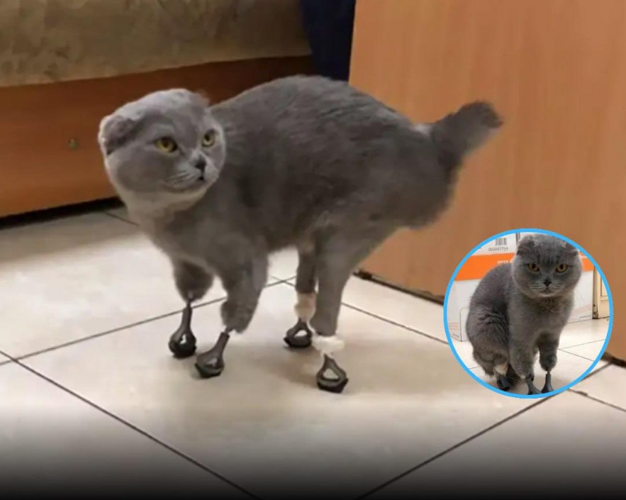 Veterinarian Sergei Gorshkov worked with researchers from Tomsk Polytechnic University to create the metal paws, which were fused directly to Dymka’s leg bones. She is only the second cat in the world 🌍 to receive prosthetics on all four limbs.