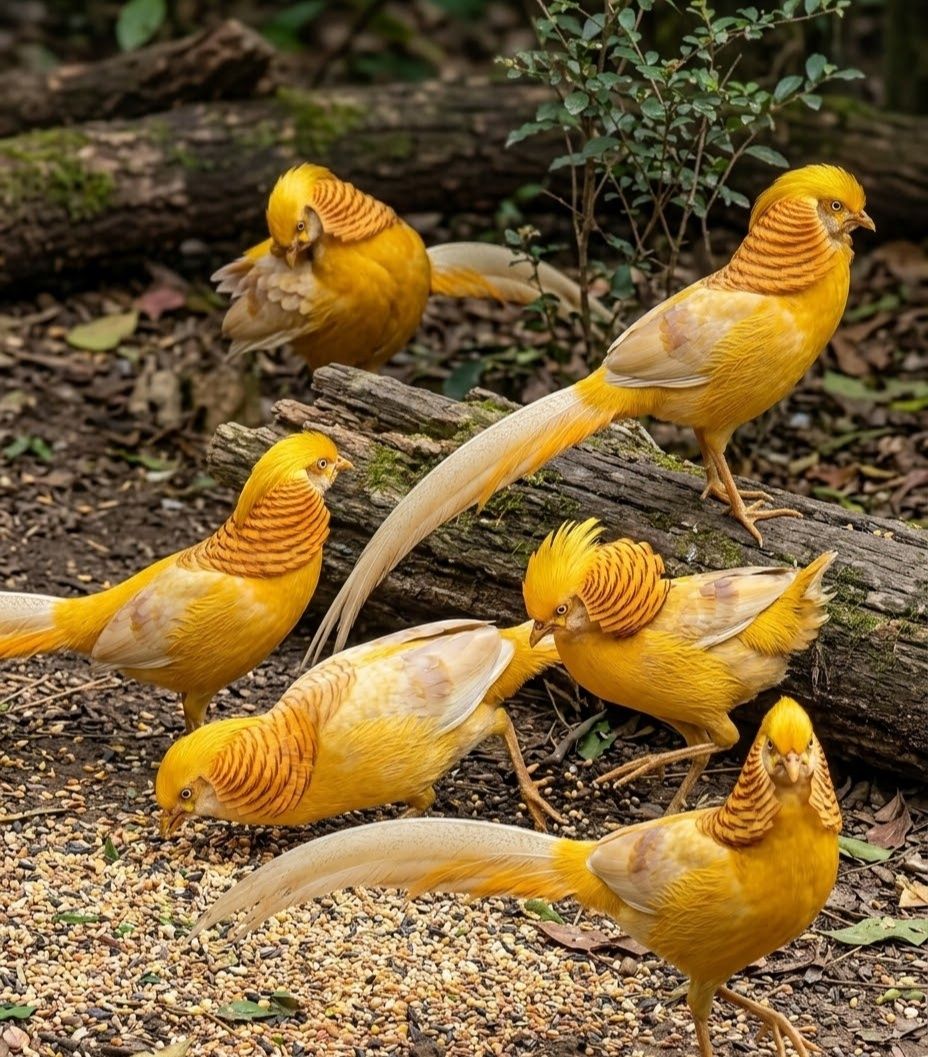 In the misty mountain forests of western China, these radiant ground wanderers move like living embers beneath the pines. They forage among fallen leaves for seeds, berries, tender shoots, and small insects, scratching gently through the forest floor in search of hidden nourishment. What makes them extraordinary is the breathtaking brilliance of the males — golden crests flowing over fiery red bodies, turning the dim forest into a stage of color. A blaze of gold and crimson in the shadows, yet a quiet gardener of the woodland floor.