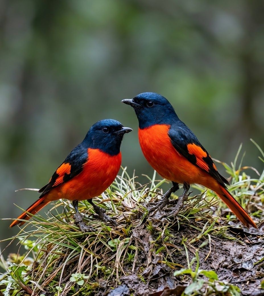 In the sunlit canopies of South and Southeast Asia, this blazing flock of color moves through the treetops like drifting embers. The males glow in vivid scarlet and black, while females carry softer tones of yellow and gray, together weaving flashes of fire and light among the leaves. They feed on insects, gleaning them from branches and snatching them mid-air with agile precision. What makes them extraordinary is their constant motion as a group — traveling in small flocks that quietly patrol the canopy, helping keep insect life in balance. A ripple of flame through green forests, yet a vigilant guardian of the treetops.