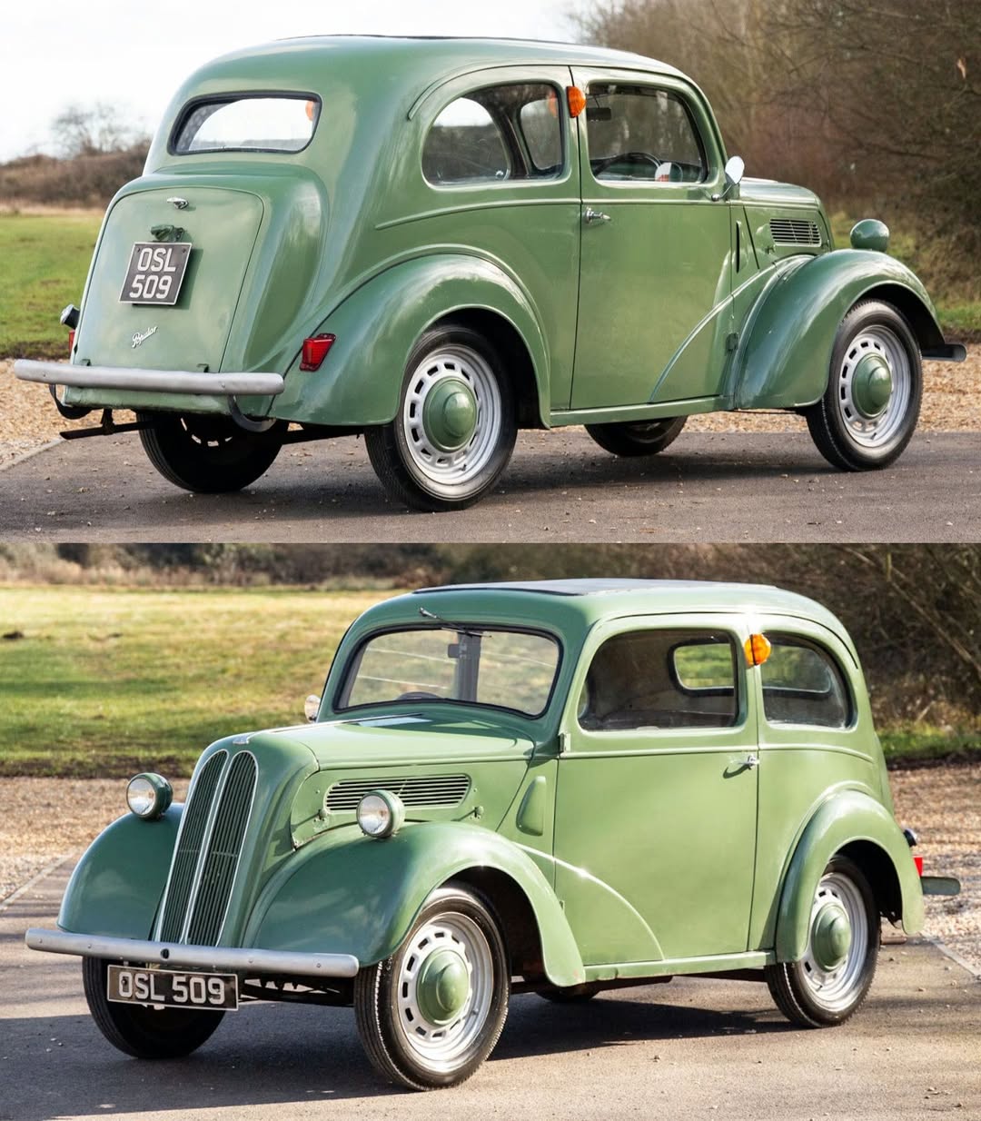 This example is finished in Ludlow Green with color-coded hubcaps, and the simple interior presents in tan vinyl with a body-colored metal dashboard housing a speedometer, fuel gauge, and ammeter. Factory-fitted ‘Enfo’ trafficators are fitted, and the 6-volt electrical system is reported fully functional.