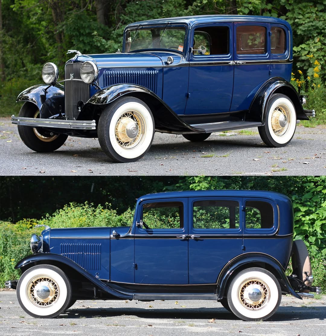 Originally built on Ford’s four-cylinder Model B chassis, this modified sedan showcases one of hot rodding’s most desirable engine swaps. The stock Model B featured a 201 cubic inch four-cylinder producing 50 horsepower, but it was quickly overshadowed by Ford’s new V-8 Model 18, which cost only $10 more and delivered far greater performance.