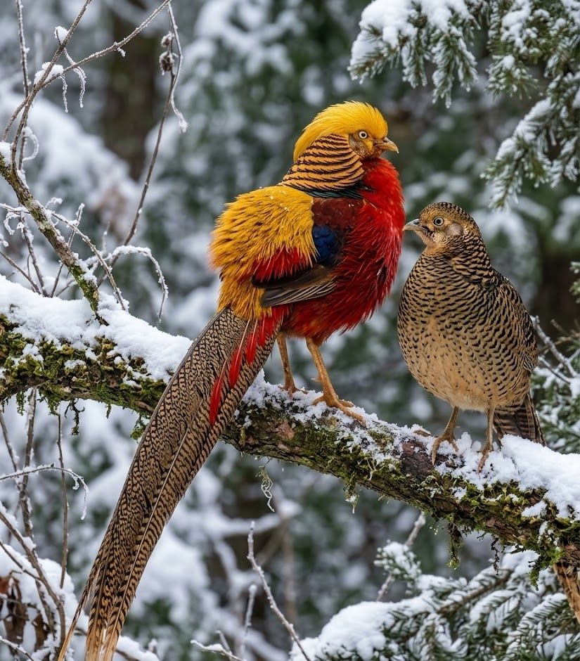 This bird wears a crown of gold and a cloak of fire, turning the forest floor into a living tapestry of color. In the misty mountain forests of western China, the male Golden Pheasant moves like a drifting flame beneath the pines.