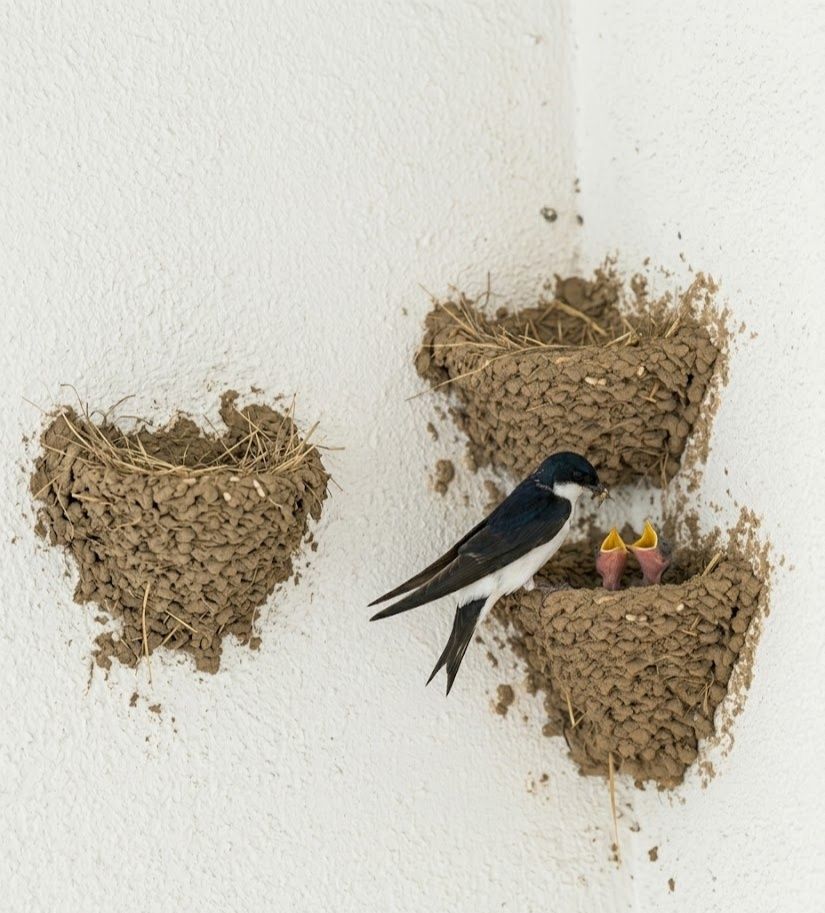 It feeds almost entirely on flying insects, sweeping across villages, rivers, and fields in constant motion. What makes it extraordinary is its bond with human structures — returning year after year to the same nesting sites, rebuilding and repairing its mud home with remarkable dedication. A flash of white and blue in the sky, yet a faithful architect of the air.