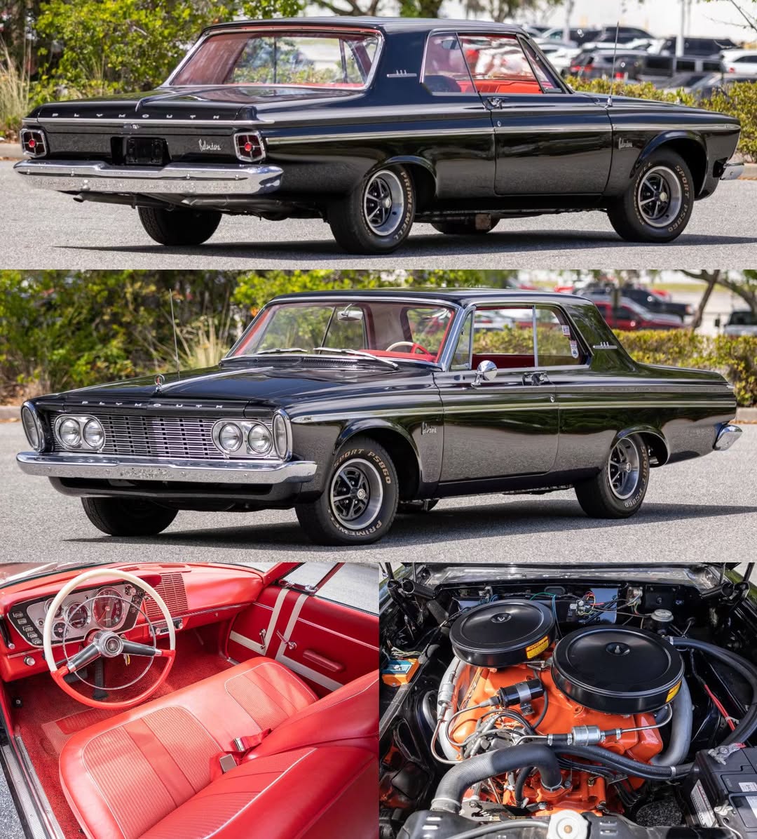 The Belvedere itself received a styling refresh for 1963 (three inches longer and one inch wider than the ’62), with a flat roofline transitioning to a flatter rear deck. Max Wedge cars typically wore a lift-off fiberglass hood with a large scoop.