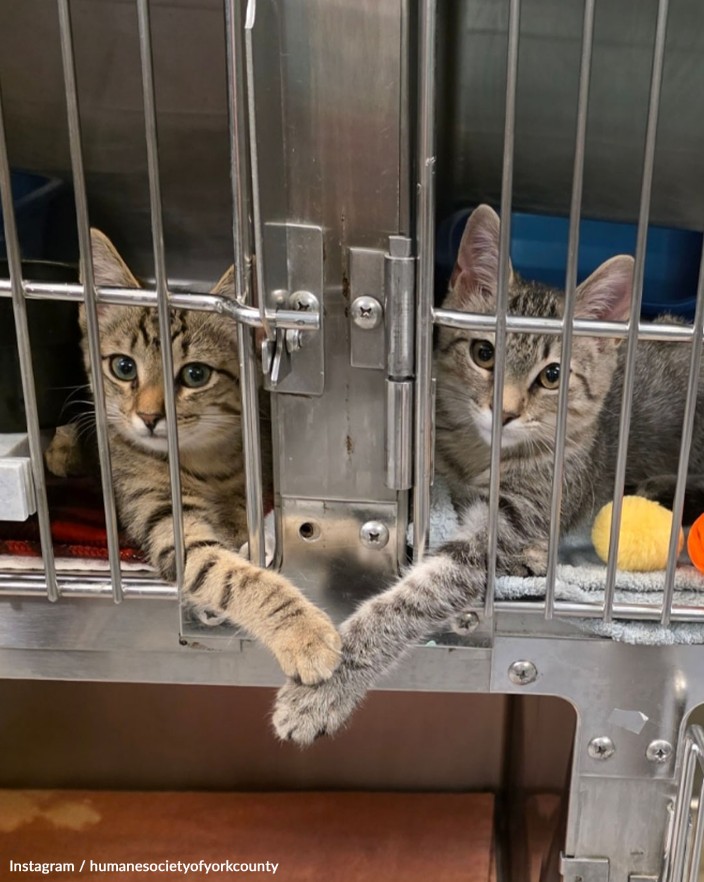 At the Humane Society of York County (HSYC) in South Carolina, a heartwarming moment between two kittens recently captured the attention of both staff and animal lovers online. In a scene that felt almost too sweet to be real, a shelter employee walked into the cat room and found two kittens gently holding paws through the bars of their separate kennels.