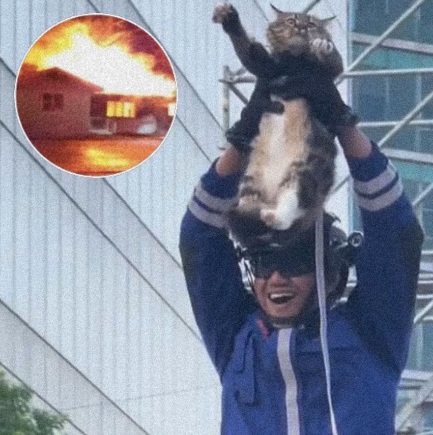 Stray cat gets an honor parade after saving a family from a house fire. She usually hovered for scraps on the porch. One night she clawed and yowled at the window until they smelled smoke from the garage and ran out. Firefighters killed the blaze, then lifted her high like a champ as neighbors cheered. She went home with the family that night.