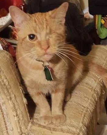 After looking at all the orange tabby kittens I was having a tough time choosing, when a kitten, much smaller than the rest, and only an empty socket where an eye should have been, appeared. I specifically wanted a female kitten, but the other female kittens wanted no part of me or my rambunctious preschooler. Can’t say I blame them. We were quite the package.