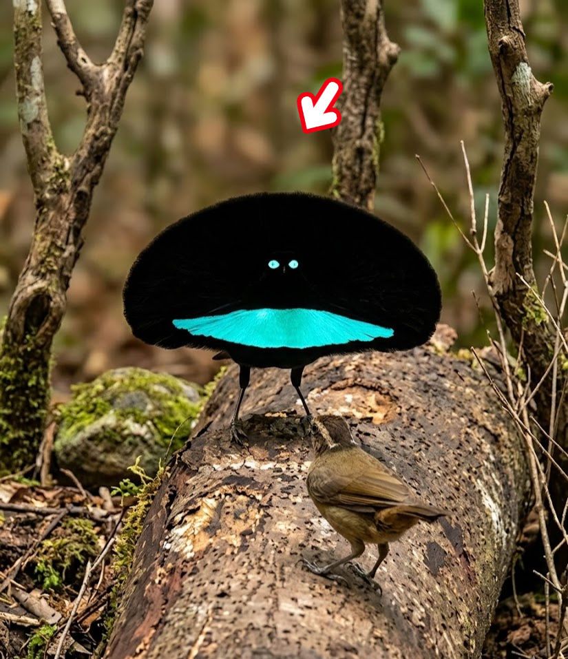 In the dense rainforests of New Guinea, the male Superb Bird-of-Paradise turns courtship into pure illusion. It spreads its velvety black feathers into a perfect oval, hiding its true shape, while a glowing blue shield appears like a neon smile in the darkness. It hops and glides in a precise, hypnotic dance, reshaping itself to captivate a watching female. What makes it extraordinary is this living performance — one of the most surreal displays in the natural world, where a bird becomes a moving symbol of color and form. A shadow that becomes art, yet a master of the rainforest stage.
