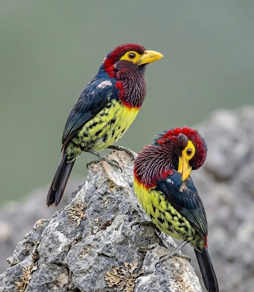 In the savannas and woodlands of East Africa, the Eastern Yellow-billed Barbet perches boldly on exposed branches, its bright red and yellow face glowing in the sun. It feeds on fruits, insects, and small creatures, using its stout bill to probe bark and pluck ripe offerings. What makes it extraordinary is its relentless voice — a rapid, metallic call that can go on for minutes, filling the landscape with an unmistakable rhythm. A splash of color in the dry woodland, yet a tireless broadcaster of the wild.