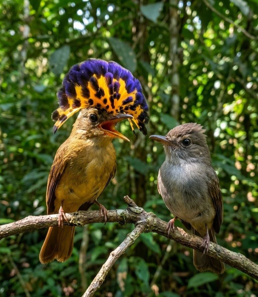 In the shaded forests of Central and South America, the Royal Flycatcher moves quietly along streams and low branches, catching insects with quick, precise flights. Most of the time, it appears modest — brown above with a soft, understated look. But when alarmed or displaying, it suddenly reveals a spectacular fan-shaped crest, streaked in fiery reds, oranges, and blues, like a hidden royal fan. What makes it extraordinary is this secret display — a burst of color reserved only for rare moments. A humble hunter in the shadows, yet a monarch in disguise.