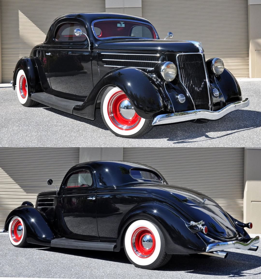 The Three-Window Coupe became extremely popular in the hot rod community, with many builders favoring its proportions over roadsters. Common modifications included chopped tops (typically 2–3 inches), dropped front axles for a lowered stance, and engine swaps to small-block Chevrolet V8s.