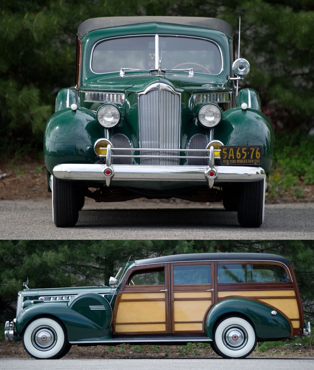 The distinctive wooden bodywork on this luxury station wagon represents an unusual combination of Packard’s premium engineering with specialized coachbuilding craftsmanship.