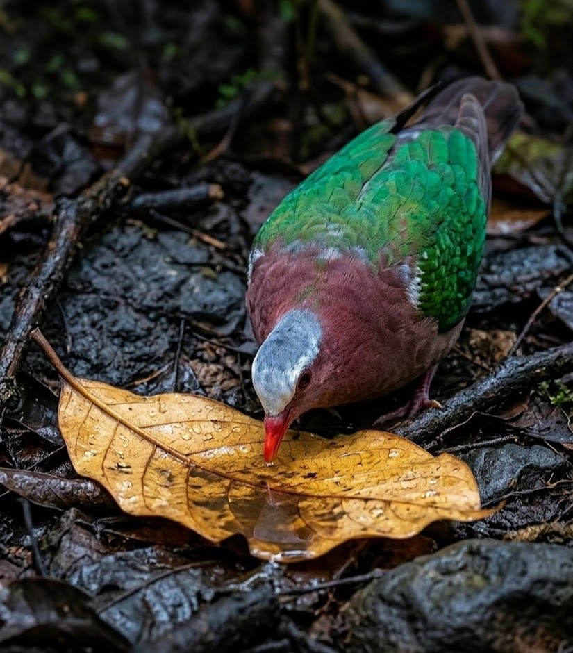 In the humid forests and coastal woodlands of Southeast Asia and the Pacific islands, the Pacific Emerald Dove glides low through the undergrowth with quiet grace. Its wings shimmer in rich green tones, catching stray beams of light as it searches the forest floor for fallen fruits and seeds. What makes it extraordinary is its role as a silent forest gardener — carrying seeds across hidden paths and helping new growth take root far from the parent trees. A soft shadow with a jewel-like glow, yet a gentle keeper of the tropical forest.