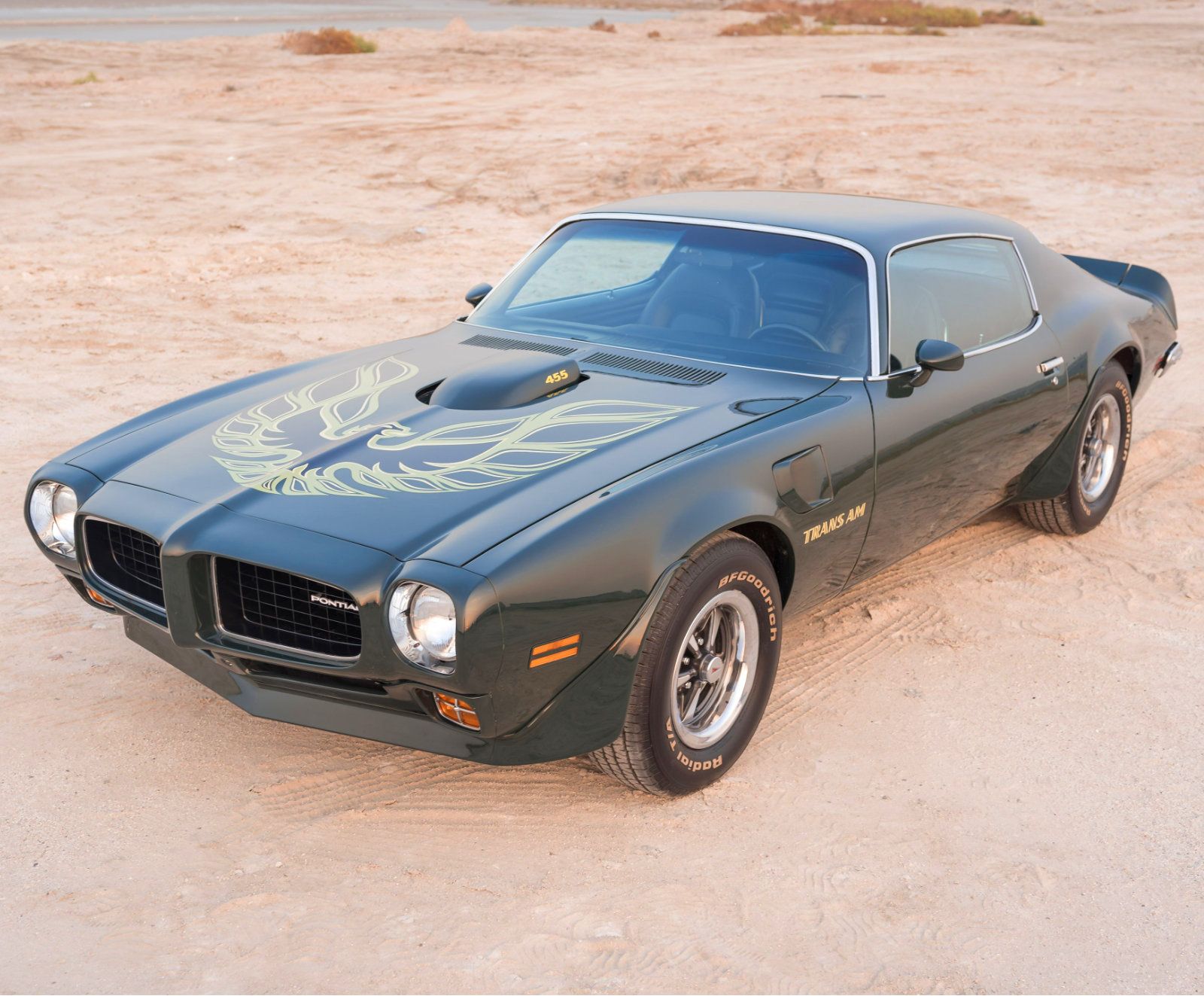 1973 was the only year a Trans Am buyer could specify Brewster Green (Code 48), which happened to coincide with the debut of the large phoenix hood graphic as an option. Priced at $55.00 and officially called the hood bird decal, it became known almost universally as the “Screaming Chicken.”