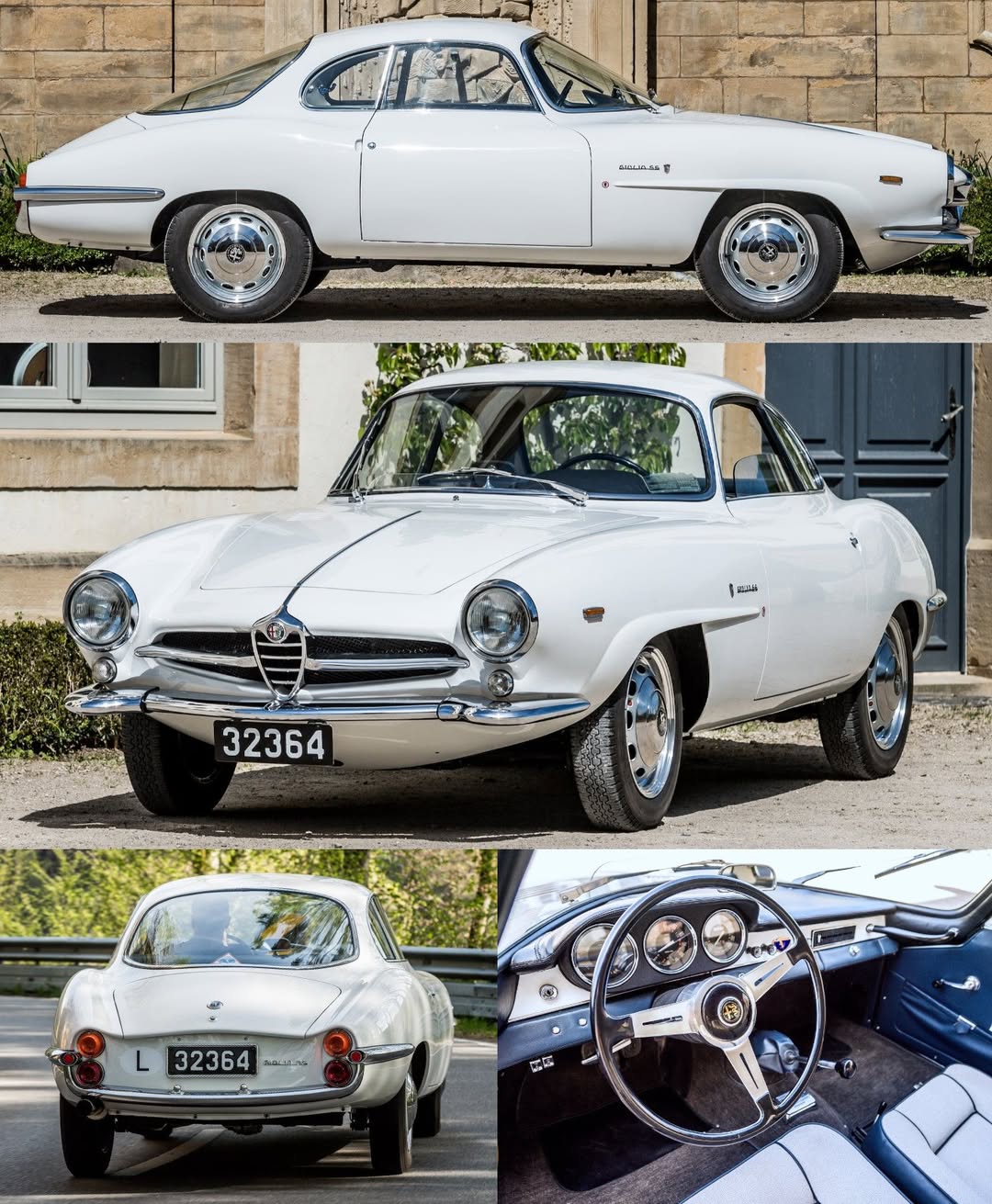 Originally introduced in 1959 as the Giulietta Sprint Speciale with the 1,290 cc twin-cam engine, the car became the Giulia 1600 Sprint Speciale in 1963 when it received the larger 1,570 cc unit with twin Weber carburetors, producing 112 horsepower at 6,500 rpm and a top speed of approximately 124 mph.