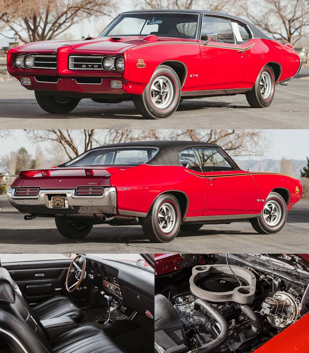 The optional Ram Air IV upgrade delivered 370 horsepower from its 400 cubic-inch V8, featuring an aluminum intake manifold, round port cylinder heads, forged pistons, and a more aggressive camshaft.