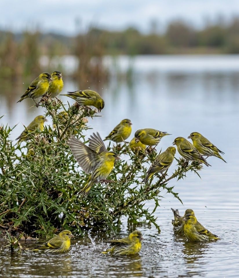In the cool woodlands and conifer forests of Europe and Asia, Eurasian Siskins move in lively flocks, flitting through branches with constant motion. Their streaked green and yellow plumage blends with leaves and needles as they feed on tiny seeds from alder, birch, and spruce cones. What makes them extraordinary is their agility — twisting, clinging, and dangling in impossible positions to reach the smallest food sources others miss. A restless flicker among the trees, yet a nimble forager of the forest canopy.