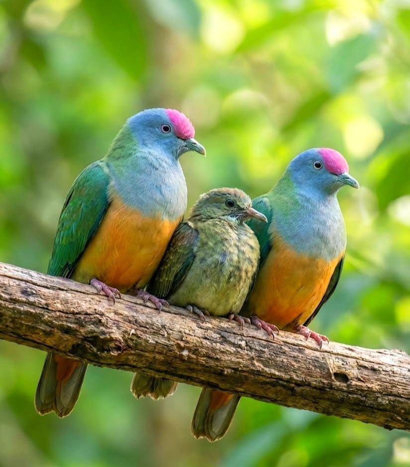 In the sun-dappled rainforests of the southwest Pacific, these rose-crowned gliders drift through the canopy with hushed elegance. They feed almost entirely on ripe forest fruits, selecting the softest offerings and swallowing them whole before lifting off on gentle wings. What makes them extraordinary is their quiet power as seed bearers — carrying life across islands and valleys, helping new trees rise far from their parent stands. Soft crowns of pink amid deep green, yet tireless architects of island forests.