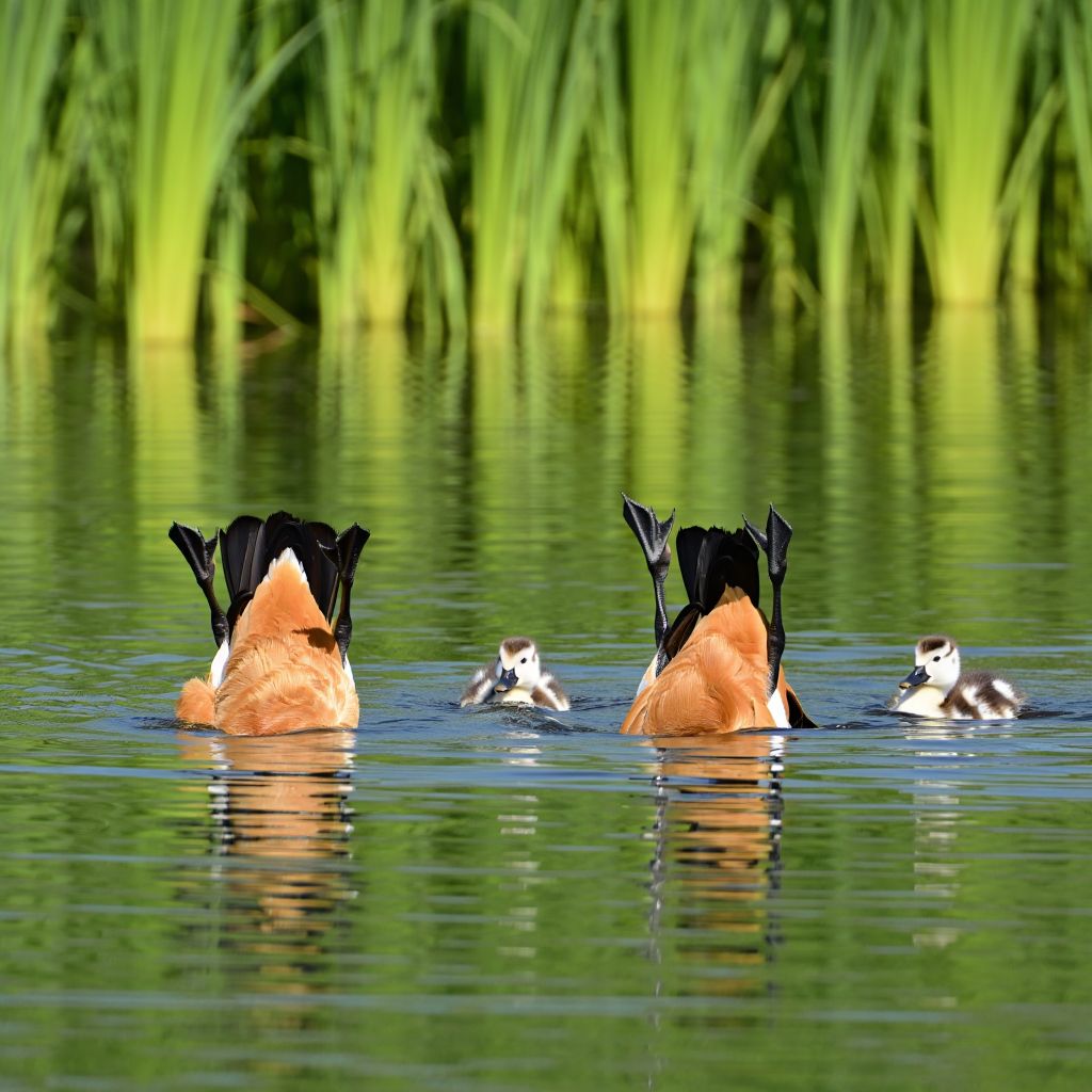 In the wide, open wetlands and high-altitude lakes of Eurasia, this flame-hued waterfowl stands out against pale water and stone. It grazes on grasses, aquatic plants, and small invertebrates, moving confidently between shore and shallows with steady purpose. What makes it extraordinary is its adaptability — breeding from lowland marshes to mountain plateaus, carrying nutrients between land and water wherever it settles. A wash of rust-red against blue horizons, bold and unmistakable, yet a reliable guardian of open waters.