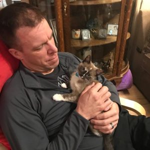 He lifted the cat, who didn’t seem too enthused about the whole scenario, but things were soon to change.