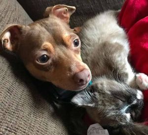 Smith already had two kittens from a shelter and a dog from a shelter. The man’s senior cat, Mocha, had recently gone away, and he had space in his heart for another kitty. Apparently, his dogs thought so, too, since Bella fit right in with his gang.