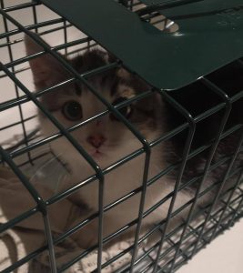 After setting up a trap in the barn, one of the little kittens got inside. He was a bit shy, he was called Jules, and his brothers were more elusive. Jules perked up quickly and put his shyness aside when he was offered some food and pampering.