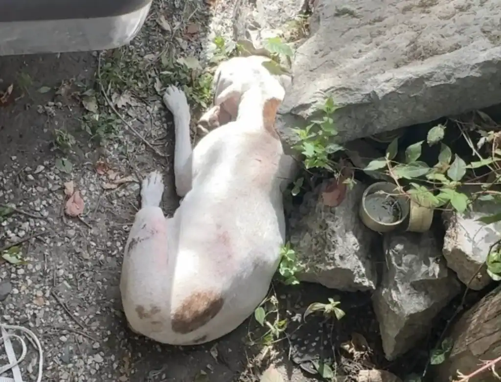 A few feet away, the mother dog was barely holding on. Her breathing was shallow, and her body was too weak to rise.