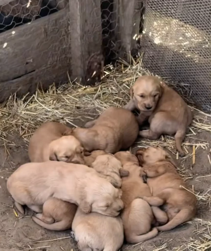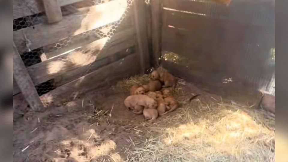 Curled safely in a corner, wrapped in straw and whatever warmth their mother could offer, were eight tiny golden puppies. Their little bellies were round. Their coats soft and full. In the middle of neglect, their mother had done everything in her power to keep them alive.